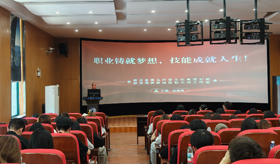在讲座的现场提问环节,学生们围绕职业规划、技能深造等话题踊跃交流,气氛热烈。最后,张清海深情寄语青年学子:“择一个行业,学一项技能,谋一份职业,创一番事业,成一片天地!”这句话深深打动了在场每一位听众,也为整场讲座画上了圆满句号。