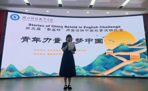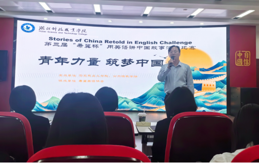 本网讯(通讯员 郭蕾吟/文 张超/图)5月29日,学校“希翼”英语协会协办的第三届“希翼杯·用英语讲中国故事”演讲比赛在思政讲堂举办。教务处、校企合作处处长,马克思主义学院院长、公共课教学部主任出席活动,公共课教研室英语教师担任比赛评委,100余名师生代表现场参与。