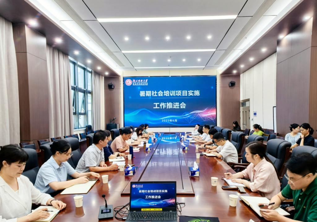 本网讯(通讯员 向海铭/文 张颢蓝/图)6月30日下午,云博电子体育组织召开暑期社会培训项目实施工作推进会。校党委常委肖潇参加会议并作指导讲话,暑期承接培训项目的部门相关负责人及项目负责人参会,会议由培训学院院长主持。