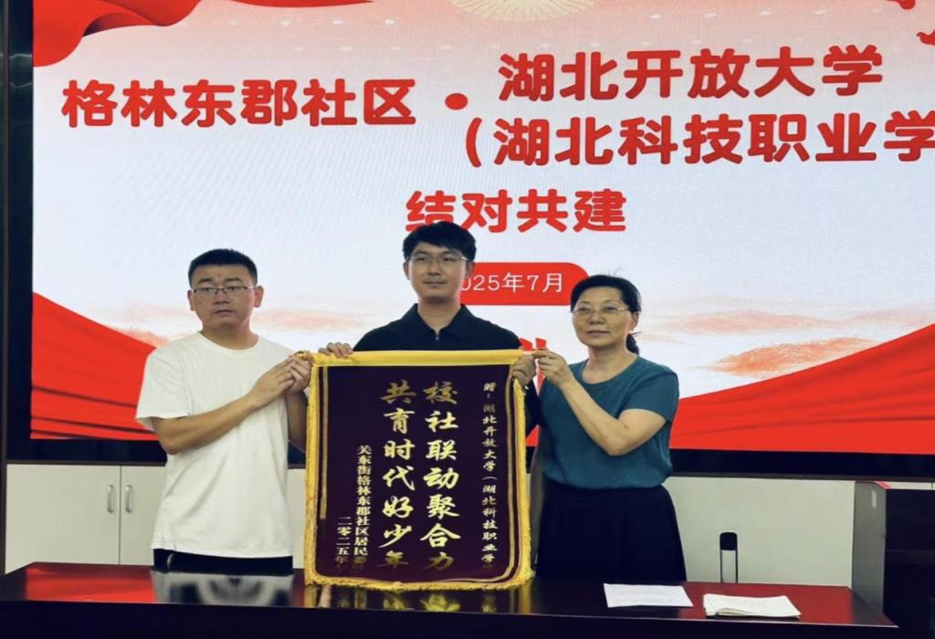 本网讯(通讯员 刘雪琴/文 刘雪琴 大学生记者:孙蓉 图)“老师和志愿者们,这面锦旗请收下!”在武汉市格林东郡社区暑期托管班的结课仪式上,社区党委书记熊金莲和家长代表捧着一面绣着“校社联动聚合力共育时代好少年”的红绸锦旗,郑重地递到志愿者手中。