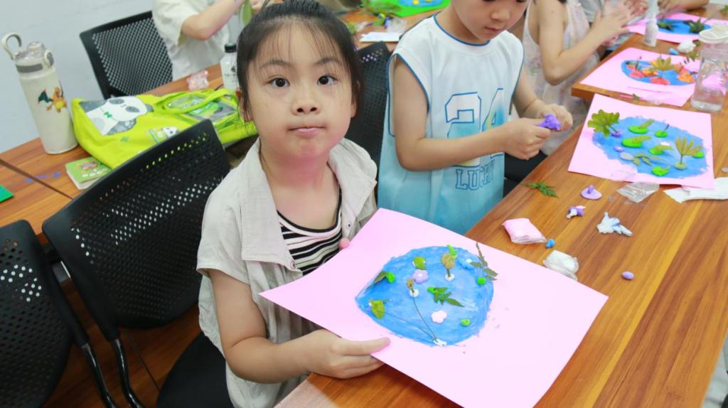 多元课程:在体验中解锁成长的N种可能。除了非遗课程与少儿编程,托管班的课程表还藏着“美育”与“责任”的密码:音乐课上,志愿者邓嘉译通过小游戏教孩子们识谱,教唱《稻香》等歌曲,让社区活动中心成了“小演唱会”;环保课走出教室,孩子们用树叶制作环保宣传海报,化身小小志愿者,在社区花园开展“洁净家园”志愿服务活动;科学实验课中,孩子们用垃圾袋自制降落伞,在记录单上写下“伞面越大,空气阻力越大,下落越慢!”的实验结论,连平时坐不住的“小调皮”都专注得像个小科学家。
