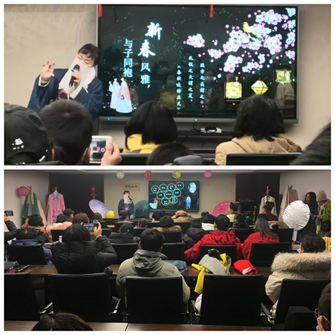 2月12日下午,活动以“讲”、“演”相结合的形式,分《汉服风行,衣冠华夏》主题文化讲座和汉服“同袍”体验两个阶段进行。预约观众在博物院“考古大讲堂”聆听姜玲教授主讲汉服文化专题讲座,领略华夏衣冠美学。讲座内容由“汉服之形 、汉服之神、汉服之美,汉服之辩”四个部分组成,介绍汉服词源和华夏衣冠体系的变迁,讲解汉服在中国文化中的地位和价值;解析当今汉服国潮这一文化现象背后的本质,她指出:汉服,并非只一件简单的衣服,是穿在身上的文化,是民族历史、民族文化和民族精神的重要承载形式,它体现着炎黄子孙血脉相承的文化内涵,是华夏之本,民族文化之根。只有了解我国的传统文化,了解汉服文化的内涵,才能更好地穿出品位,穿出美。期间,黄雷、万若冰老师还穿插组织了汉服知识有奖问答活动,与听众展开互动。