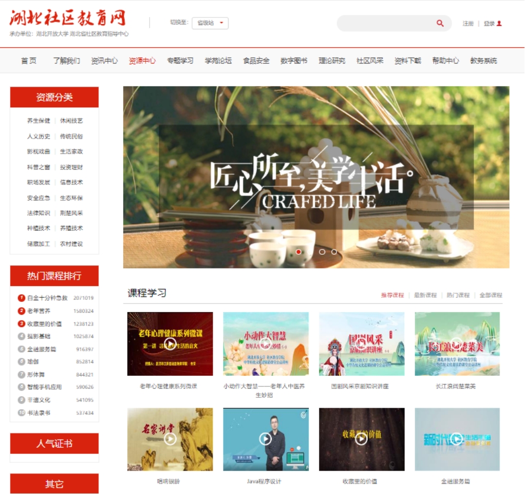 湖北社区教育网老年教育线上课程资源库截图(部分)